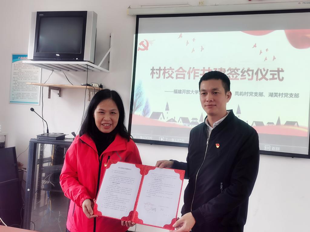为进一步贯彻落实基层党组织共建联创机制,切实发挥村企校地党建联动优势,助力乡村振兴,文经学院党总支与凤屿村党支部决定开展基层党组织结对共建,双方约定,发挥学院专业师资团队和科技特派员团队作用,为凤屿村乡村振兴提供教学资源,输送人才;探索设立现代农业经济管理专业教学实践基地,为相关专业学生活动提供资源和平台;落实福州市“乡村振兴人才培养工程”,为村“两委”班子成员及其后备力量提升学历提升提供服务;建立党建工作交流机制,共同推进学生网上党支部建设。文经学院党总支书记王妙真和凤屿村党支部书记陈兴代表双方签署合作协议。