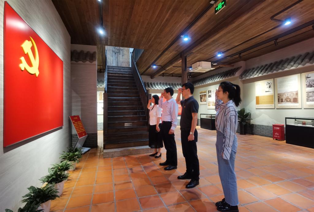 潮江楼是福建省级革命历史遗址、福州市级革命历史纪念地,也是福州籍党的早期领导人、中国工人运动的杰出先驱、中央监察委员会首任主席王荷波同志从事革命活动的重要旧址。支部党员认真参观了王荷波烈士事迹展,通过观看“千锤百炼”“工运领袖”“潮湧马江”“纪检先驱”“碧血丹心”“红色家风”和“不忘初心、砥砺前行”7个板块中丰富的文字、图片、实物和场景,详细了解到王荷波同志为实现共产主义理想而献身革命事业英勇悲壮的历程,以及对完善党内监督制度、严肃党纪等工作作的有益探索,真切感受到王荷波同志坚定的共产主义理想信念、“品重柱石”的高尚品格和清廉自律的纪检监察先驱者光辉形象。随后,在王幼新的带领下,全体党员面对党旗庄严重温入党誓词,牢记党员身份、不忘初心使命。