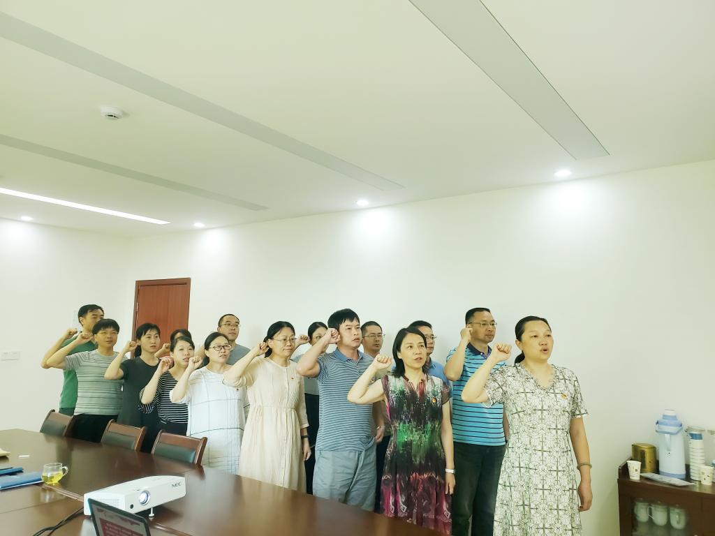 活动最后,学院全体党员在总支书记的带领下举起右拳,齐声重温了入党誓词。