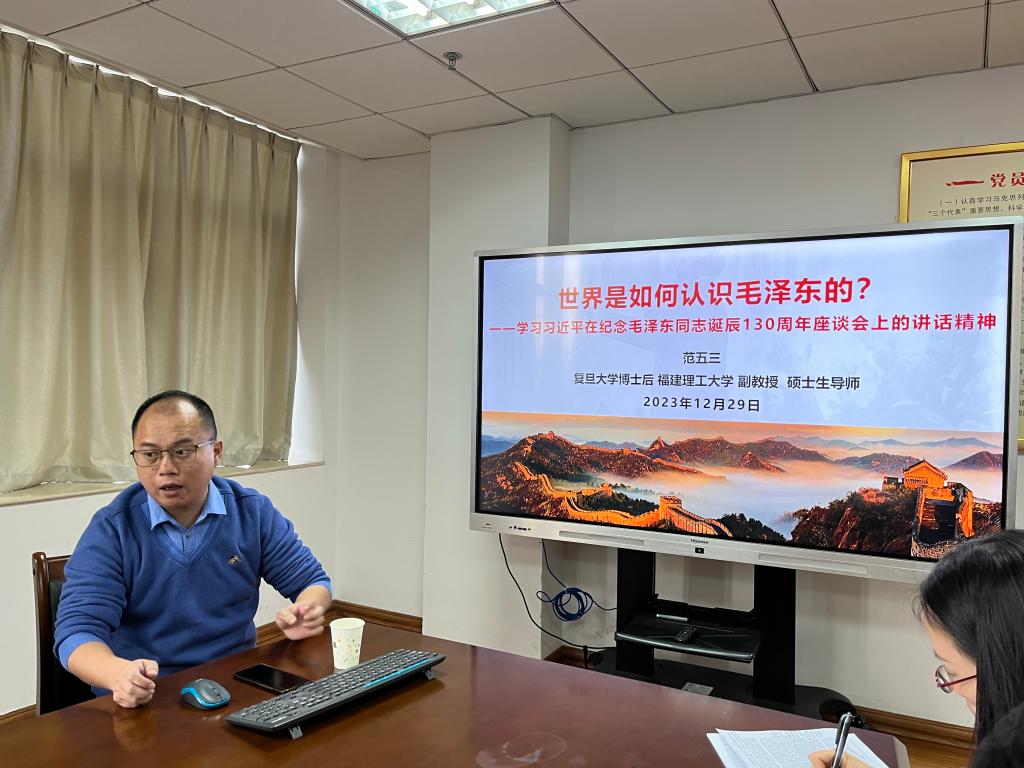 为不断深化党史学习教育,推动团员和青年主题教育深入开展,12月29日,马克思主义学院党支部联合校团委开展“感悟伟人思想魅力 奋进新时代新征程”主题党日活动。