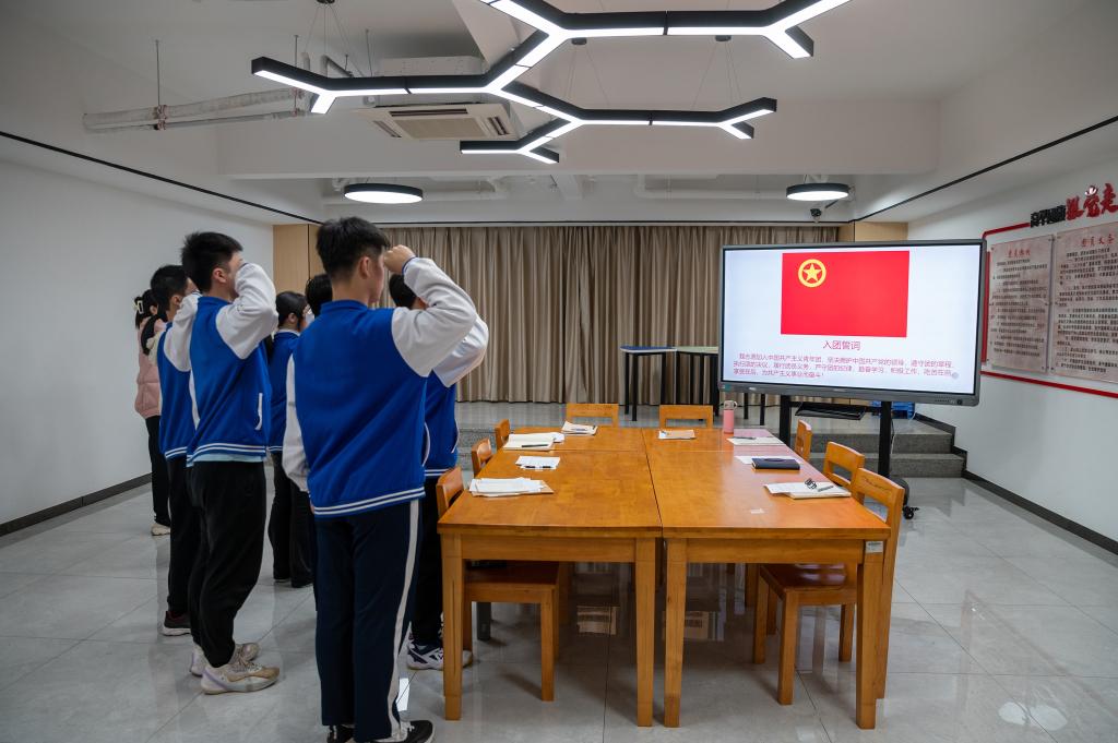 最后一项议程为重温入团誓词。全体团员面向团旗,举起右拳,庄严宣誓:我志愿加入中国共产主义青年团,坚决拥护中国共产党的领导,遵守团的章程,执行团的决议,履行团员义务,严守团的纪律,勤奋学习,积极工作,吃苦在前,享受在后,为共产主义事业而奋斗!