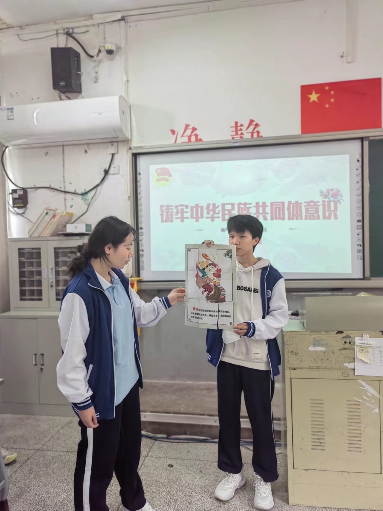 活动分为校内和校外两部分。3月27日下午,班级在教室开展“铸牢中华民族共同体意识”的主题班会,班主任和同学们精心策划了知识讲解、民族拼图游戏和民族竞答等环节,同学们积极参与,现场气氛热烈。通过多种形式的学习与互动,同学们深入了解了各民族文化,进一步加深了对民族团结的理解和认同。3月29日下午,同学们在班主任的带领下前往福州三坊七巷畲族馆参加校外实践学习活动,在讲解员带领下,同学们通过观看畲族文物展览,感受少数民族的风情与魅力。活动进一步强化了同学们的中华民族共同体意识,让他们对民族团结的重要性有了更深层次的体会。
