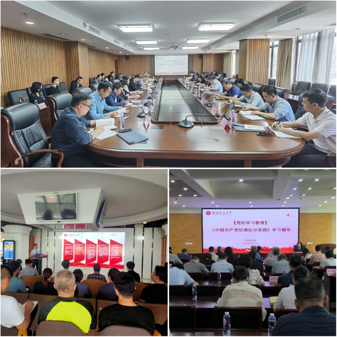 为落实校党委《关于在全校党员中开展党纪学习教育的实施方案》的要求,提升基层党组织党纪学习效果,校纪委深入左海校区和职业学院面向150余名党员开展《条例》学习辅导,对《条例》修订的历史沿革、重要意义、主旨要义和实践要求等方面做了全面解析。同时针对学院或部门的岗位特点和工作实际,结合高校易发多发的典型案例,详细解读了《条例》的主要内容,教育引导党员干部以案为鉴、警钟长鸣,增强学纪、知纪、明纪、守纪的纪律自觉。