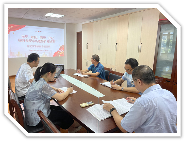 结合党纪学习教育及“七一”主题党日活动,支部书记詹立彩以《学纪知纪明纪守纪 提升党纪学习教育“分辨率”》为题,为全体党员讲授专题党课。詹立彩强调全体党员要做到学纪、知纪、明纪、守纪,搞清楚党的纪律规矩是什么,弄明白能干什么、不能干什么,把遵规守纪刻印在心,内化为言行准则,进一步深化对加强党的纪律建设重要性和忽视党纪、违反党纪问题危害性的认识,进一步强化纪律意识、加强自我约束、提高免疫能力,增强政治定力、纪律定力、道德定力、抵腐定力,始终做到忠诚干净担当。
