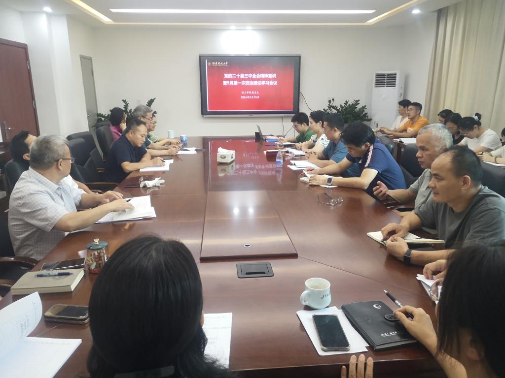 9月10日,理工学院召开党总支理论学习中心组学习(扩大)会议暨全体教职工政治理论学习。会议由党总支书记、院长雷乃旺主持,全体教职工参加。