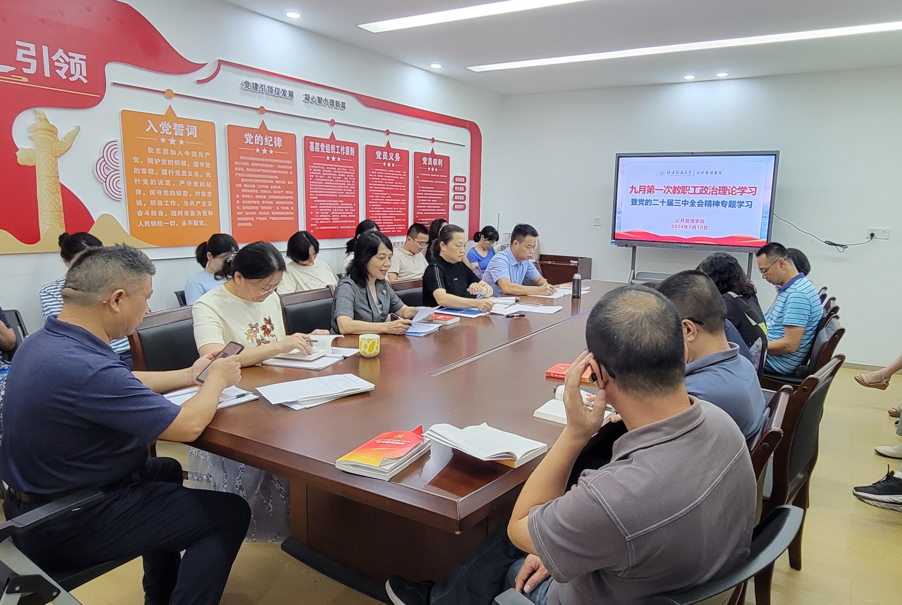 为深入学习贯彻党的二十届三中全会精神,9月10日,公共管理学院结合庆祝第40个教师节系列活动,于学院会议室开展“坚决维护核心 强化使命担当 服务改革发展大局”主题党日活动,活动由院长谢程燕主持,学院全体教职工参加。