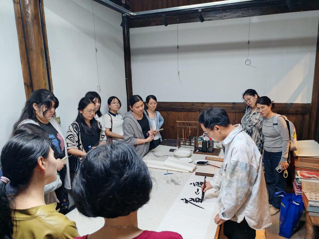 在文儒坊问耕堂美学空间,全体人员参观了省政协书画院“砚边行”廉洁主题书画作品展,书法学专业党员教师王圣亚现场挥毫泼墨,从书法书体和文字学字义两方面对廉字进行解析,使师生更好地理解“廉”的意义。结合10月份第二次教职工政治理论学习,党总支副书记、纪检委员王芳传达了学校廉洁教育主题活动有关事项,她强调要紧密结合学院招生办学实际,推动党纪学习教育常态化长效化,打造“翰墨清风”学院廉洁文化品牌建设,将廉洁教育融入师生日常教育中。党政管理支部纪检委员陈鸿伟、教师党支部党员周霞分别围绕学习贯彻党的二十届三中全会精神和习近平总书记来闽考察时的重要讲话精神分享了学习体会。