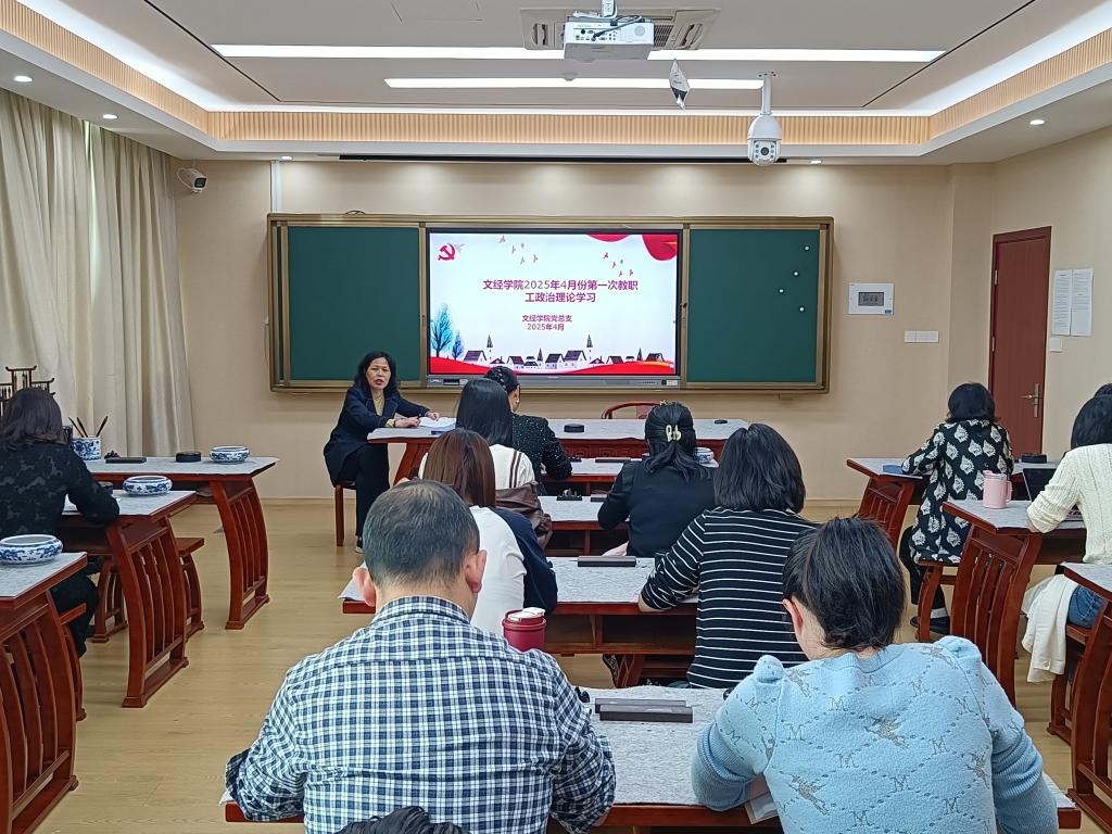 4月8日下午,文经学院党总支组织开展4月份第一次全院教职工政治理论学习并安排部署近期工作,会议由学院党总支书记王妙真主持,全体教职工参会。