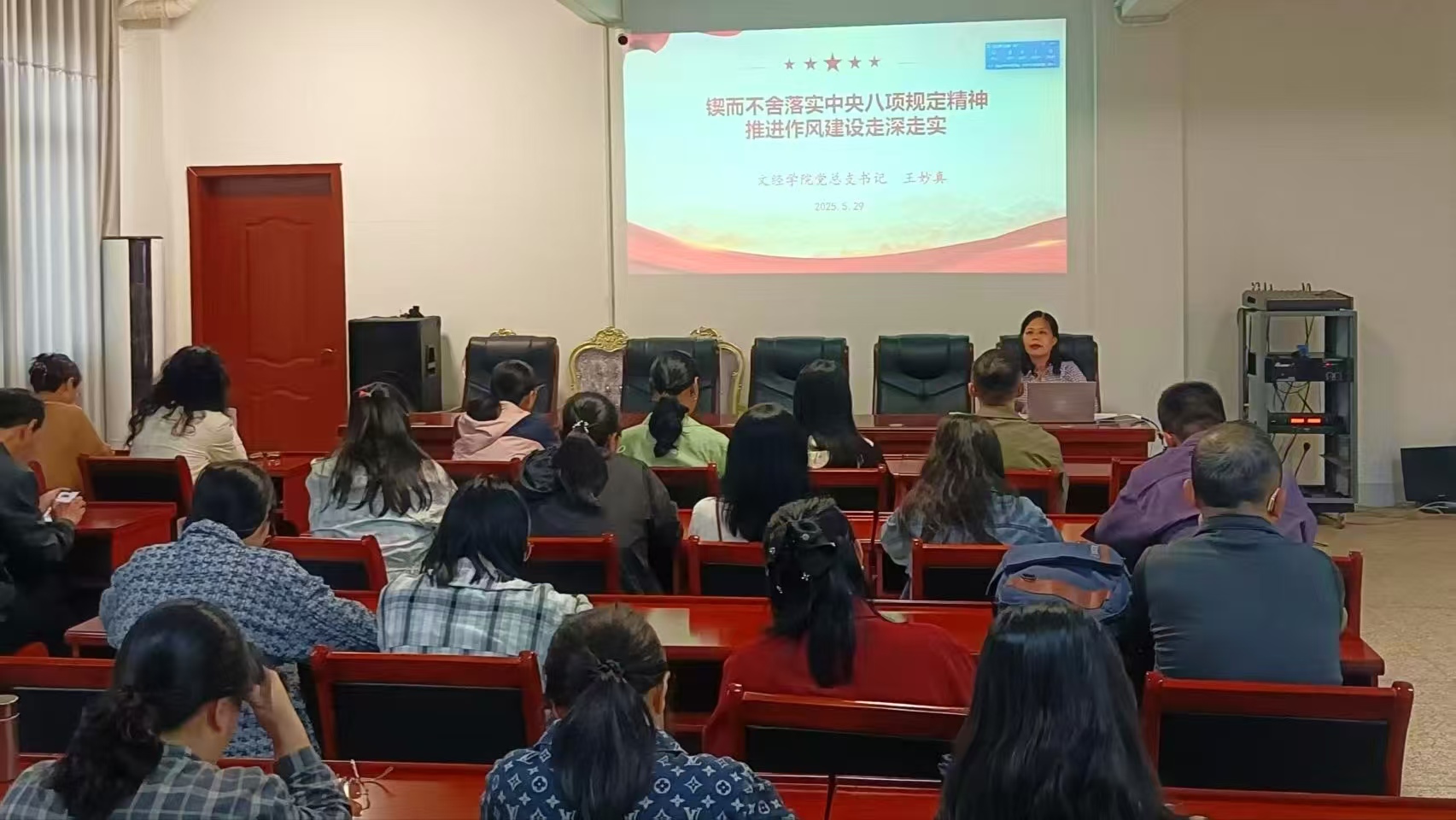 深入贯彻中央八项规定精神学习教育开展以来,文经学院党总支聚焦主题,把握关键,引导党员师生深刻领悟中央八项规定精神的时代内涵,确保学有质量、查有力度、改有成效,以优良作风汇聚起推动学院办学高质量发展的强大合力。