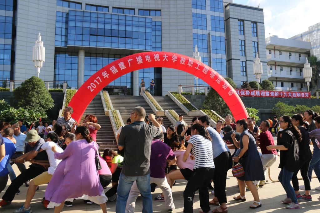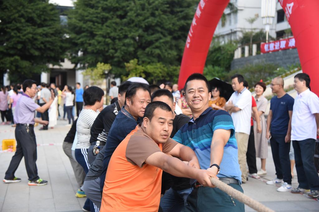 为庆祝建国68周年,推动全民健身活动开展,丰富教职工业余文化生活,喜迎党的十九大胜利召开,由工会主办的2017年教职工趣味运动会拔河比赛于10月12日下午在桂山校区图书综合楼前广场举行。