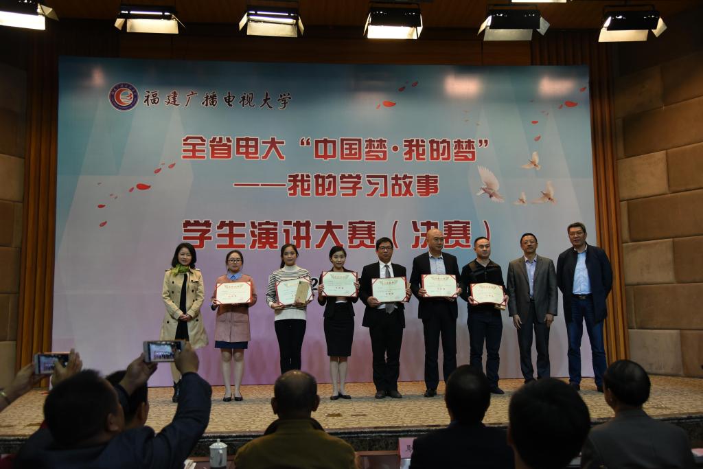 我校高度重视本次大赛,对参加全国总决赛进行了认真准备和周密部署,最终发挥出色,成绩优异,我校开放教育学生李莉(邵武分校,指导教师鄢国辉)的《不忘初心,让美丽梦想照亮前行的路》获得总决赛一等奖,邓歆(沙县工作站,指导教师班玉凌)的《一次偶遇,一生良师》获得二等奖,开放教育学院张文成同学的《十年之思》、漳州分校陈乐同学的《有梦想就有动力,奋斗改变人生》、南平分校吴婷同学的《坚持永不言弃》三个作品获得优秀奖。我校还获得本次活动组织奖。