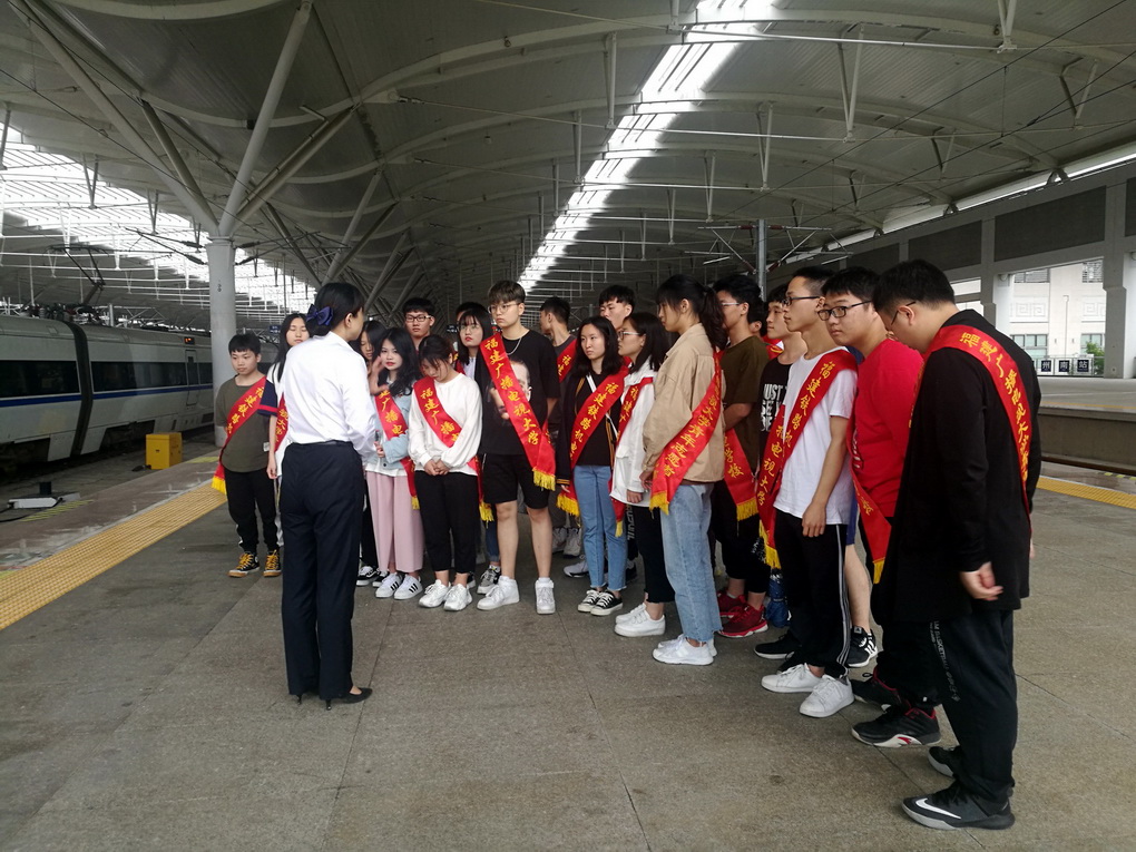 5月20日,同学们来到福州火车南站参观体验,亲身感受“高速发展的中国铁路”。车站工作人员带领同学们参观了自动化程度较高的售票厅、进站口、检票口、列车站台、出站口和高铁列车等先进设备,细心地为同学们讲解车站运营情况和工作要求。参观后,同学们分成5个小组到不同的岗位体验,了解先进设备的使用情况,感受高速铁路给人们出行带来的极大方便,进一步加深同学们对高速铁路是中国走向世界的一张名片的认识。