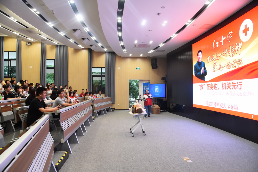 为深入贯彻习近平总书记关于“没有全民健康,就没有全面小康”重要指示精神,不断深化学校精神文明创建工作,提高师生自救互救和防灾避险能力,进一步关爱和保障师生的生命健康和安全。9月24日下午,学校邀请省红十字会现场应急救护中心在桂山校区智慧教室开展应急救护公益讲座,校工会会员,青年团干、青年教师代表,学生代表近100人参加了培训。