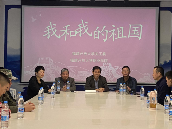 为充分了解学子在军训中的想法感悟,引导学生们向上、向善,福建开放大学关工委常务副主任肖朝福特地前往基地看望军训学生并召开座谈会。座谈会中,肖朝福表达了对军训学生的关心,表示军训虽苦最累,但是必须经历的磨练,是成长成才的必经之路。他寄语当代青年要厚植家国情怀,挑起新时代所赋予的重担,努力成为中国特色社会主义事业的优秀建设者和可靠接班人。