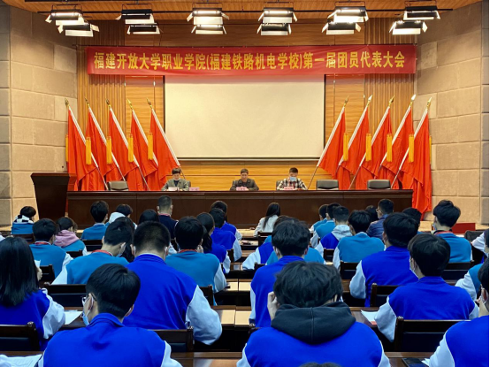 伴随着慷慨激昂的《光荣啊,中国共青团》的奏响,共青团福建开放大学职业学院(福建铁路机电学校)第一届团员代表大会圆满落幕。