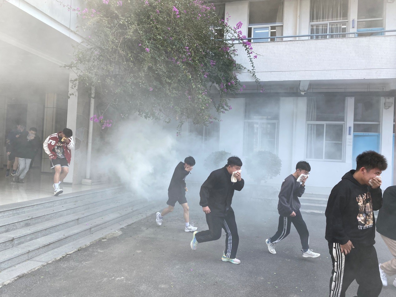 演练前,学院制定了本次消防安全应急疏散演练活动方案,明确了教师的岗位职责和班级疏散路线。班主任通过班会课,开展消防安全教育,对学生进行应急疏散程序及其逃生技能知识的培训。随着消防警报被拉响,教学楼内烟雾四起,消防演练拉开序幕,班主任迅速地引导教室内学生进行快速疏散,学生们弯腰疾行,毛巾捂住口鼻,在老师的组织下沿着指定的疏散通道快速前进,撤离到安全地带,整个逃生过程迅速而有序。