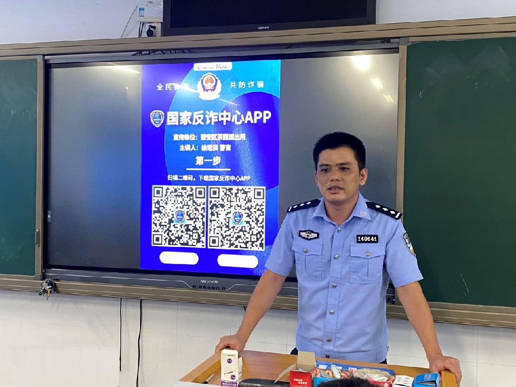 开学季是各种诈骗行为高发期,为有效防范电信网络新型违法犯罪在校园内外的发生,切实增强学生防诈反骗意识,保障学生财产安全,近日,茶园派出所徐警官通过走进教室开展电信网络诈骗知识宣讲。