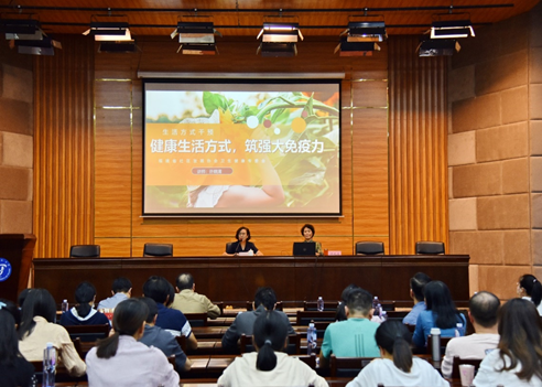 许晓清从什么是生活方式医学入手,阐述健康生活方式对筑强大免疫力的重要性,通过丰富的专业理论知识、详实的数据、鲜活的案例以及活跃的互动,增强了教职工健康生活方式意识。讲座深入浅出,现场气氛活跃,教职工受益匪浅,反映良好。