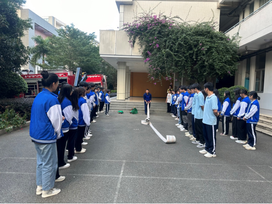 消防员向学生们展示了空气呼吸器、灭火救援服、救援切割锯、耐火救生绳等消防救援工作中使用的常规装备,通过实景教学、示范操作等方式,让学生们更加直观地了解这些装备的作用和使用方法。同时,消防员还为学生们讲解了消防安全知识,提醒他们在日常生活中注意防火、避免火灾事故的发生。