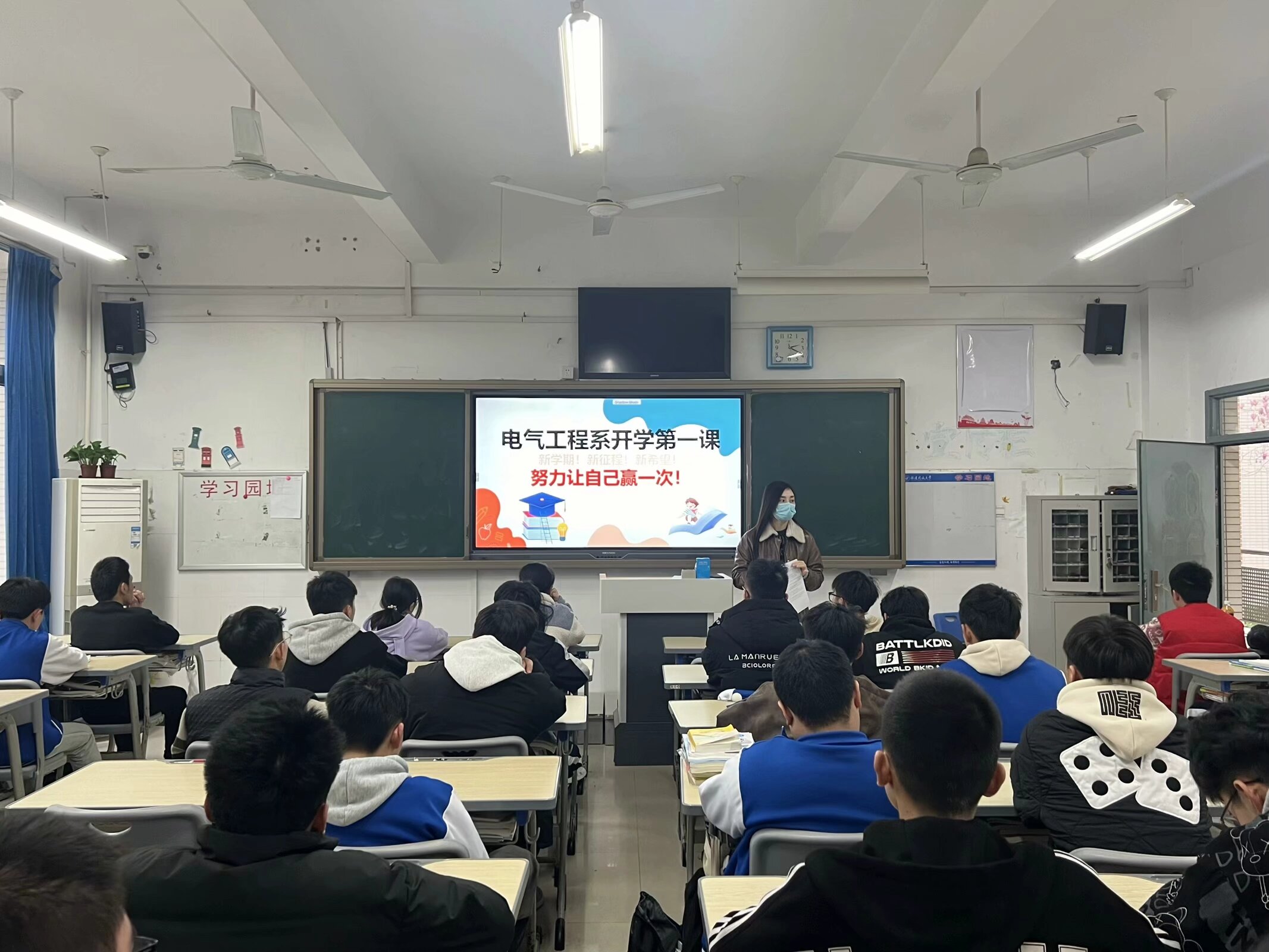 春风和煦,暖阳初至。一个充满希望的新学期已悄然开始,为使学生尽快适应假期转换与心理转变,加强对学生的理想信念教育。3月4日下午,职业学院电气工程系组织开展了以“努力让自己赢一次!”为主题的开学第一堂班会课活动。全系班主任以及学生参加了此次活动。