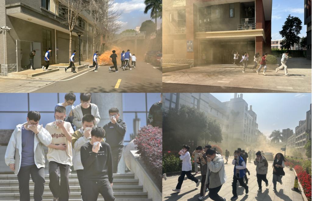 3月25日下午13:50分,院长陈伟雄下发演练启动指令,火灾逃生疏散演练正式开始,消防警报随即响起。全体工作人员迅速进入状态,按照预定方案到达各自岗位,引导学生有序疏散。在老师们的带领下,学生们用毛巾捂住口鼻,低头弯腰,迅速撤离宿舍和实验室。整个过程中,学生们沿着指定的路线,快速而有序地撤离到安全区域。演练全程仅用时5分钟,经核实,全体师生均安全撤离。