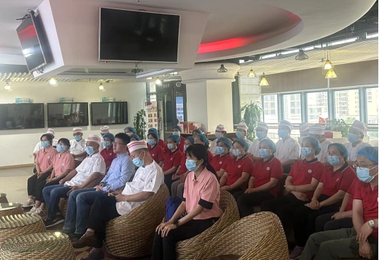 膳食管理科副科长黄艾非在培训动员时强调,全体员工要高度重视校园食品安全工作,全面强化“风险意识”和“责任意识”,以本次培训为契机,学以致用,在工作中充分落实。