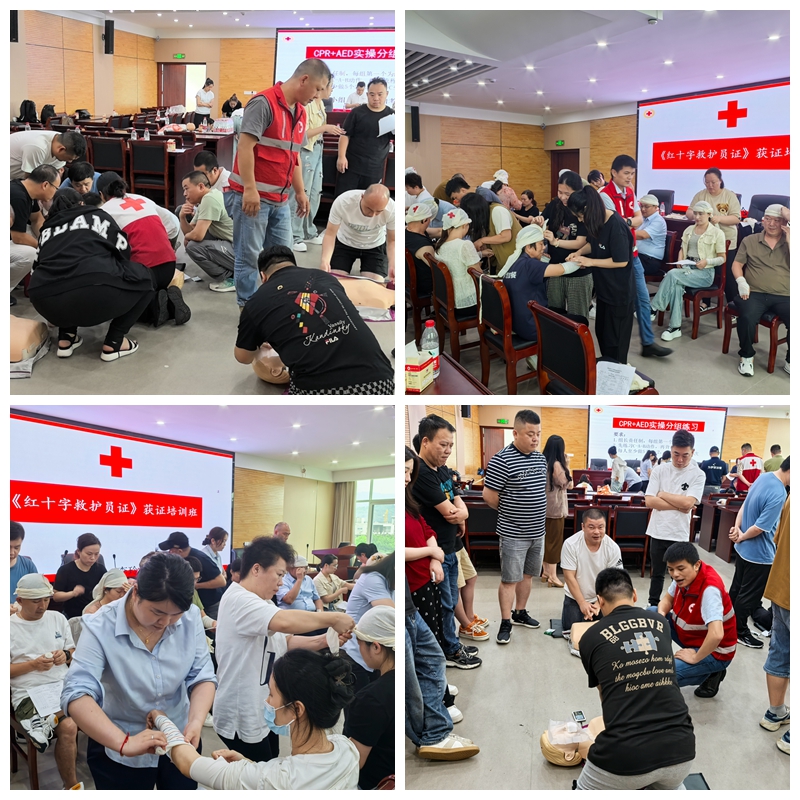 在为期两周的培训中,学员们系统学习了心肺复苏术、创伤救护等培训要求的急救技能。本次培训采取理论讲授、现场演示、实践操作等方式进行授课,全面讲解胸外按压、人工呼吸、AED机使用、止血、包扎等应急救护技巧。在老师详细讲解示范下,学员们反复认真进行实操练习,规范掌握救护技能。学员们通过培训掌握了熟练的操作技能完成考试内容,全员百分百通过考核,成功获得省红十字会颁发的红十字救护员证。