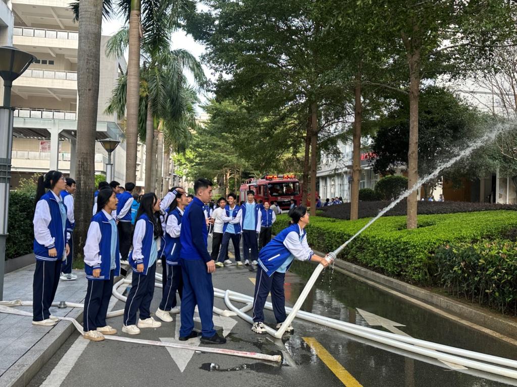 11月7日下午,为深入推进“119”消防宣传月活动,普及消防安全知识,提升学生消防安全意识,晋安消防大队新店救援站消防车开进校园,通过消防装备展示和亲身体验的形式,为同学们带来一堂生动的消防安全主题教育课。