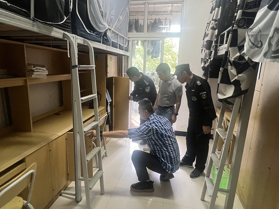 当日上午,联合排查小组深入学校各栋学生宿舍楼开展管制刀具排查。行动前,小组进行了详细的沟通与部署,明确了排查重点、范围以及具体流程,确保排查工作有序、高效进行。排查过程中,民警与学校保卫人员秉持严谨负责的态度,依照规范流程,对学生宿舍的床铺、衣柜、抽屉等可能存放管制刀具的地方细致检查,整个排查过程秩序井然,经排查,未发现学生携带管制刀具的情况。