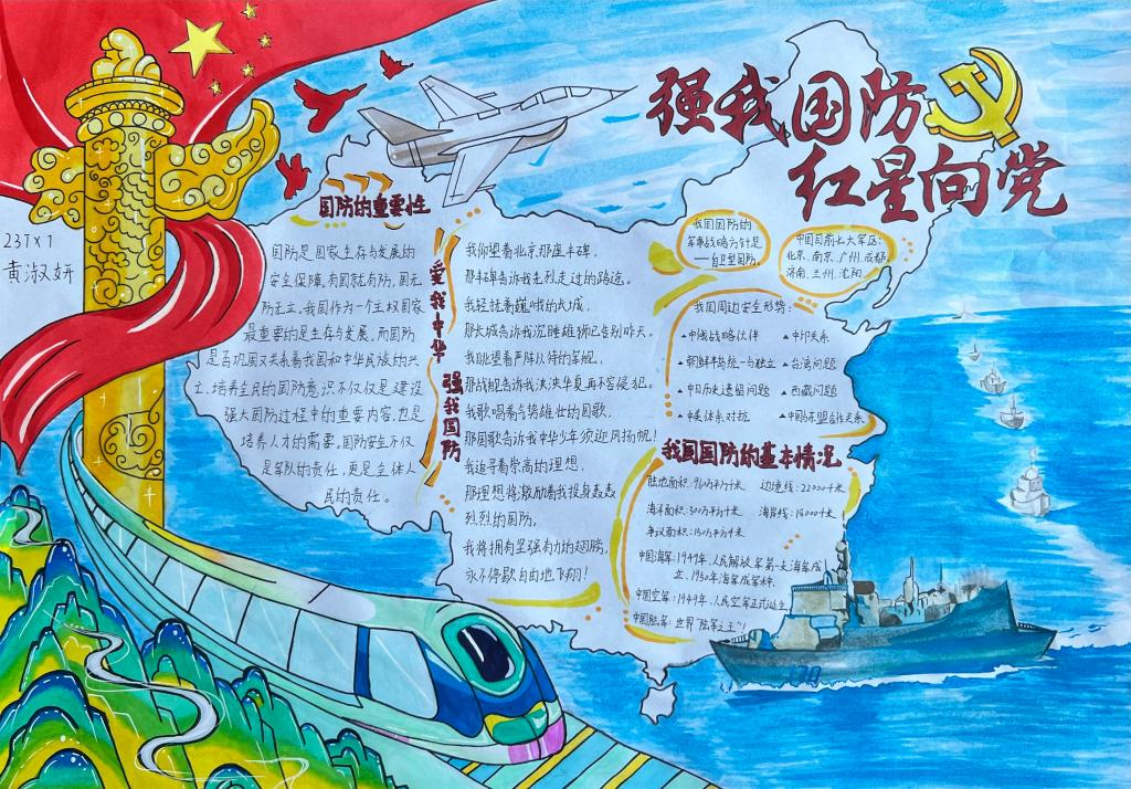 在创作过程中,同学们紧扣主题,将国家安全知识与艺术创作融合,充分发挥想象力与创造力,用绚丽的色彩、独特的构图和生动的文字,描绘出一幅幅主题鲜明、内容丰富、设计新颖的手抄报作品。这些作品不仅展现了同学们扎实的绘画功底和艺术素养,更体现出新时代青年对国家安全的深刻理解与守护决心。有的作品聚焦网络安全,警示大家防范网络风险;有的围绕生态安全,呼吁大家共同守护绿水青山;还有的描绘军事安全,展现国家强大的国防力量……每一幅作品都饱含着同学们对祖国的热爱与祝福,彰显出青年学子维护国家安全的使命担当。