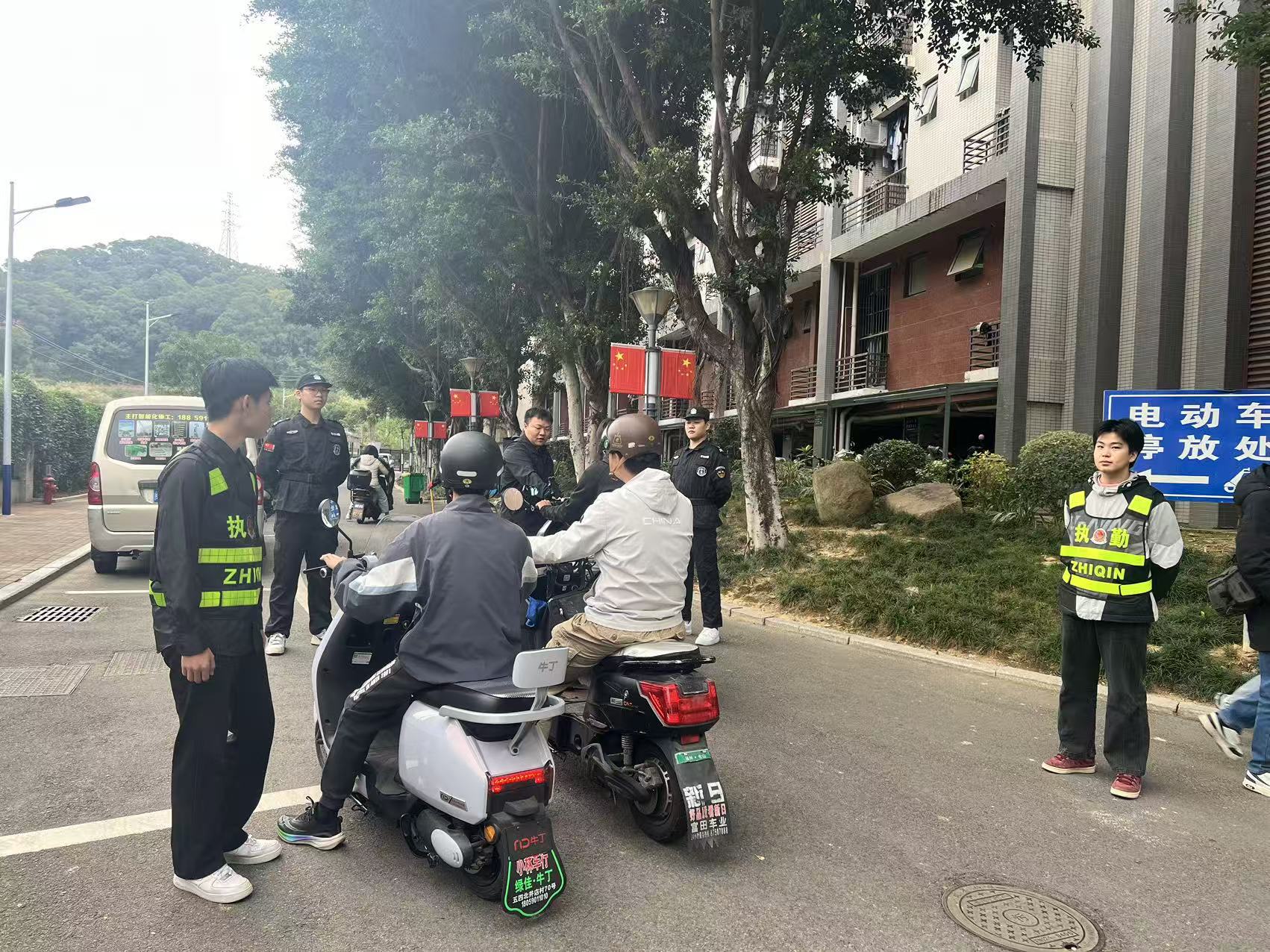 整治实施阶段,学院组建“安保人员+教师+学生干部”联合检查组,采用定点值守模式,在上下学高峰时段严把校门入口关,对入校学生的骑行行为进行逐一检查。对未佩戴安全头盔的学生,现场进行安全教育并登记信息,督促其立即整改。对遮挡牌等违规车辆,予以暂扣处理。行动中,检查组还同步排查电动车非法改装、违规载人等衍生隐患,全面净化校园骑行环境。