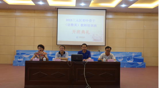 为贯彻落实福建省人民政府《关于进一步加强中小学教师队伍建设的意见》的文件精神,有效地提高中小学骨干教师的教育教学能力,促进初中骨干教师专业化成长,全面提升教育教学质量。8月22日上午,由三元区教师进修学校与海西教育网共同举办的“2015三元区初中骨干(语数英)教师培训班”在三元区第二实验小学学术报告厅举行了开班仪式。三元区教育局督导室副主任邱木金,福建电大教师远程教育学院副院长江克英、三元区教师进修学校副校长陈新书、朱毅鸿和全体学员一同出席了开班仪式。仪式由副校长朱毅鸿主持。