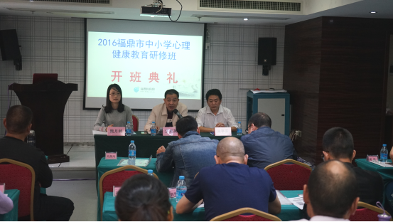 11月21日上午,2016福鼎市中小学心理健康教育研修班在福州光龙大酒店举行开班仪式。福建广播电视大学培训学院副院长江克英、培训科副科长熊月林、福鼎市教师进修学校副校长吴平安以及福鼎市各校负责心理健康教育工作的德育主任或分管领导共计50人出席开班仪式。仪式由熊月林主持。