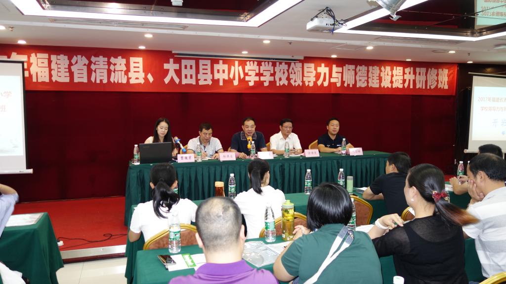 为提高学校管理者的自我修养和履行工作职责的能力,7月21日,培训学院在重庆举办2017清流县、大田县中小学学校领导力与师德建设提升研修班。培训学院副院长江克英、清流县教师进修学校校长涂清发、大田县教师进修学校校长林再生、继教网重庆办事处业务主管刘宗峰及两县98位中小学校长、副校长、中层领导干部出席了开班仪式。