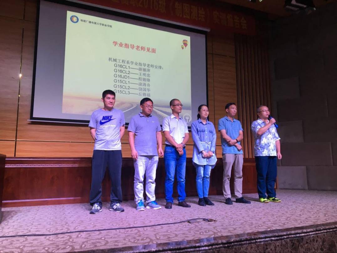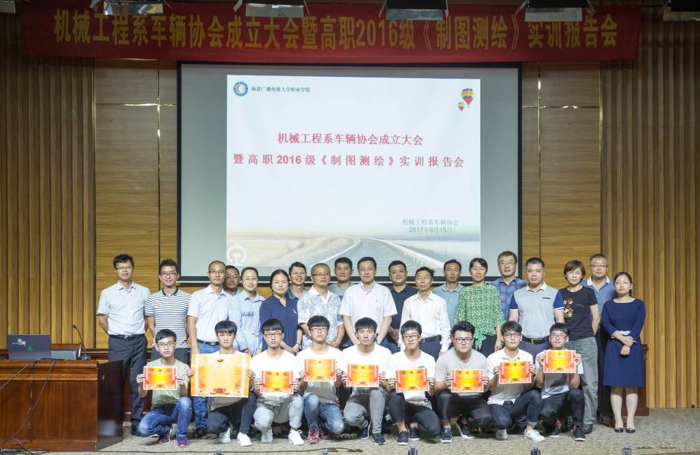 6月15日下午,职业学院机械工程系车辆协会成立大会暨高职2016级《制图测绘》实训成果报告会在博厚楼二楼演播厅隆重举办,学院领导池毅、颜宁德、教务科科长刘艳、学生科科长汪媚、学院团委书记程铭瑾及机械工程系全体专兼职教师应邀出席。