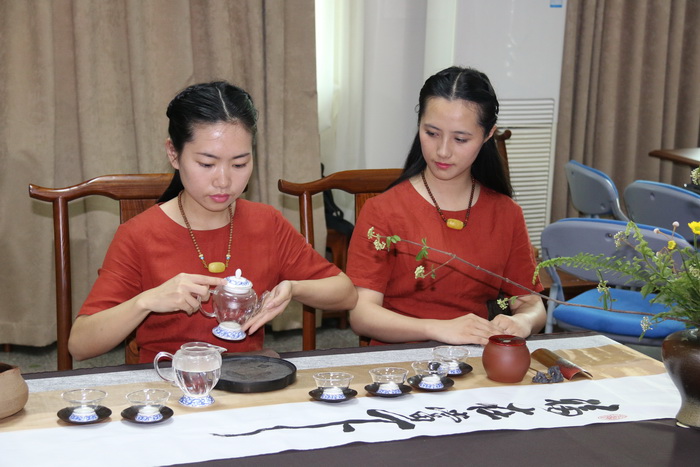乌龙茶组学生吴惠金、谢玉玲展示茶艺