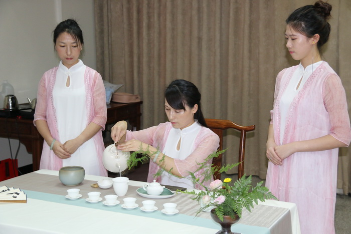白茶组学生吴碧仙、吴惠新、朱巧娥展示茶艺