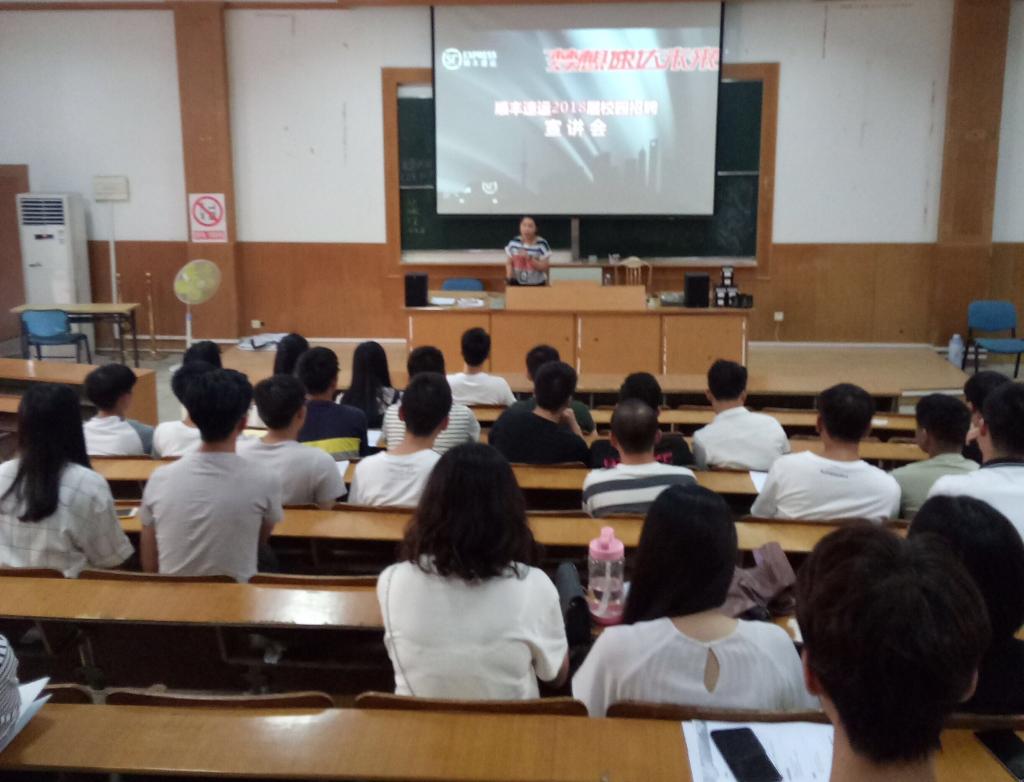 10月20日下午,在顺丰速递的宣讲会上,人力资源部的相关负责人先播放了一段顺丰的宣传片,接着从企业的角度介绍了顺丰速递的概况、理念、人才策略,同时对于应聘者的具体要求和发展通道进行了简单的介绍。宣讲会期间,现场气氛活跃,大三的学生们积极咨询与职业相关的问题。