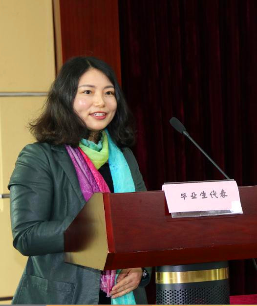 教师代表赵蓉副教授发表了热情洋溢的讲话,希望所有毕业生把毕业当作人生新的起点,明确自己前行的责任和担当;人生路上要充满爱,不管人生遇到多大的困难,都能用爱来化解。最后祝福所有毕业生的未来越来越精彩。