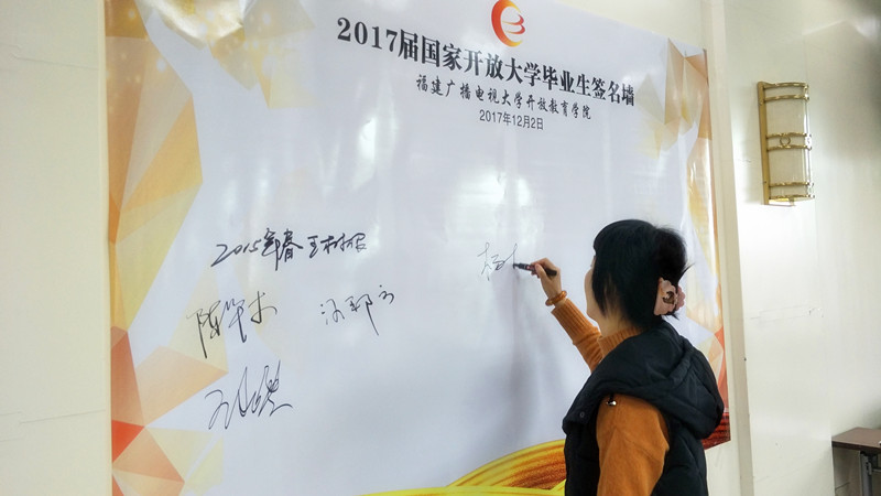 院长雷乃旺代表学院对毕业生们通过三年的努力学习顺利毕业,获得国家开放大学毕业证书表示热烈祝贺,接着介绍了福建广播电视大学最新的发展状况,尤其是学校新批准的大数据研究所、学分银行、开放教育二元制等项目,让毕业生们以母校的发展而感到光荣,坚信自己作为一名电大毕业生的荣耀,努力承担对社会的一份责任。同时提出几点希望:希望毕业生们常怀感恩之心,常回母校看看,分享人生路上的快乐与挫折;希望毕业生们养成终身学习的习惯,适时再回母校充电加油,为人生增加不一样的色彩;希望毕业生们力所能及为母校的发展添砖加瓦;最后祝愿同学们前程锦绣、健康幸福。