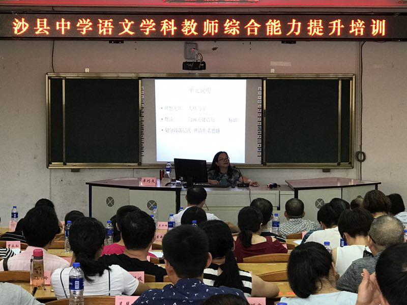 为深入贯彻落实《中共中央国务院关于全面深化新时代教师队伍建设改革的意见》,大力加强沙县中小学教师队伍建设,进一步提升中小学教师综合素质、专业水平、教学能力,进一步提高教学质量,8月20日上午,培训学院在沙县举办2018年沙县中小学语文、数学、英语学科教师综合能力提升培训班。