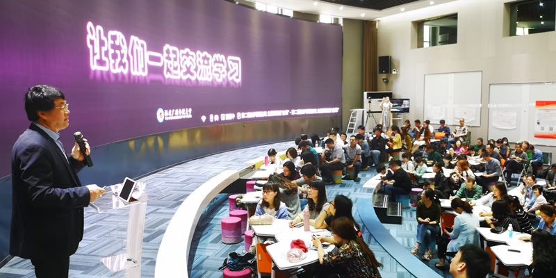 活动分“立足课堂话‘金课’”为主题的教学常青论坛和“Think with their hands让学生用手思考、手脑并用,培养创新思维”的主题论坛两个部分。教学常青论坛上,我校副校长陈展虹在武汉轻工大学主会场作了《移动互联网时代的课堂教学创新》的主题讲座,与全国高校的一线教师进行了新理念的交流、新方法的分享。来自美国金门大学国际知名教授Jay Gonzalez,带领老师们认识了学生用手思考的好处,体验了用手思考的方法,设计了用手思考的评估准则。