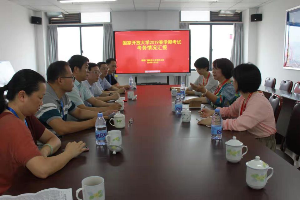 为确保本次考试顺利有序进行,学校认真制订组考方案,先后下发《关于2019年春季学期期末考试安排的通知》、《关于做好2019年春季期末考试巡查员选派工作和召开培训会议的通知》、《关于召开2019年春季学期期末考试考务工作网络视频会议的通知》等文件。7月1日,省校组织全省各考点主考及考务人员观看国家开放大学2019年春季学期考试工作视频直播并部署考务工作,要求各考点认真落实国家开放大学考试会议精神,面对考试新形势,尤其是本学期国家开放大学学员不参加网络教育公共基础课程统一考试,改为期末考试相关课程替代,更要严格组考,严肃考风考纪,净化考试环境,重点对考生开展考前诚信教育,做好突发事件紧急处置预案。7月4日,省校组织召开巡查工作培训会,要求巡查人员在考试新形势下,从思想上保持高度重视,认真履行职责,敢抓敢管,切实维护正常考试秩序。