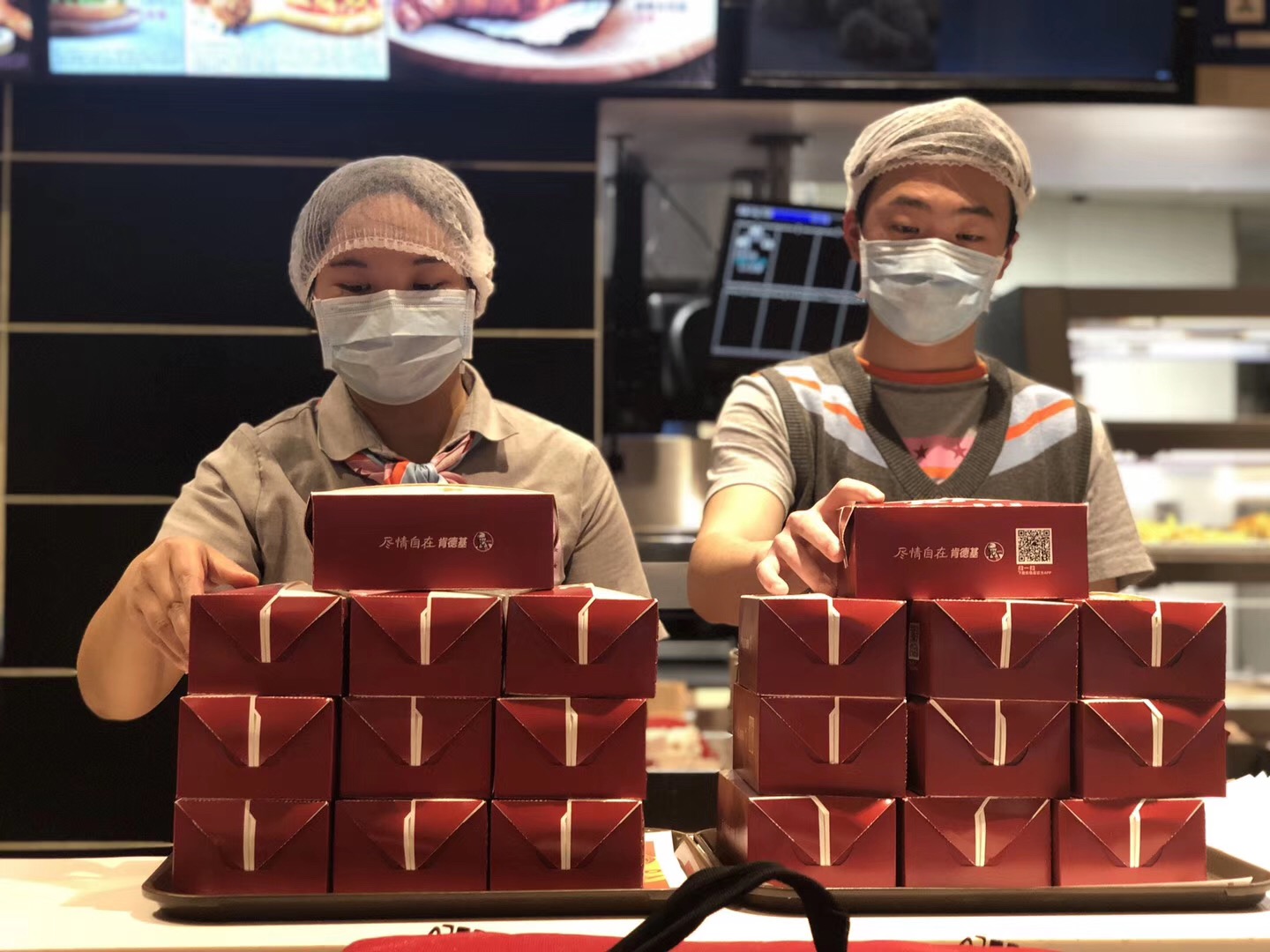 面对突如其来的疫情,百胜班约300名同学积极响应国家、学校和企业号召,放弃休假,坚守餐饮岗位,踊跃报名参与到百胜集团在全省各地市肯德基门店向医护人员送爱心餐的活动中去,以此来表达对白衣天使们的支持、关心和敬意。