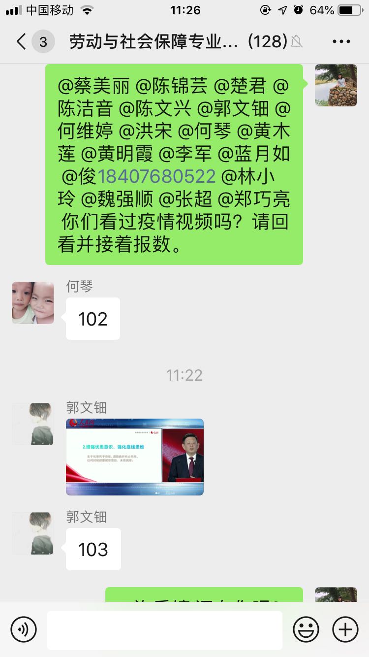 为保障本次疫情防控思政大课的学习效果,省电大教务处、马克思主义学院提前下发通知,要求全省电大系统组织好各类型各专业学生及时在线学习直播课程。各学院、各市县电大精心安排,确保这次特别的思政课程取得实效。教务处泉电教学点将收看本次课程计入学生本学期思政课程考勤和形考成绩。直播前,公共管理学院王小红等班主任老师在班级群逐一提醒学生收看直播并指导学生做好收看直播准备工作。直播过程中,莆田分校建立思政讨论微信群,在线解答学生提出的问题,134位在线学生表现积极、踊跃提问。直播结束后,继续教育学院等教学点还以班级为单位组织学生开展线上讨论,撰写学习心得、分享学习感受,进一步强化对思政课讲授内容的理解,将教育效果延伸到课下和生活中,真正把思想引领做到位,做到学生心里。