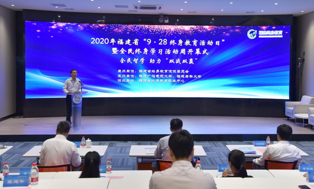 9月28日上午,2020年福建省“9·28终身教育活动日”暨全民终身学习活动周在福州开幕。活动由福建省终身教育促进委员会主办,福建广播电视大学、福建老年大学承办,福建省终身教育服务中心协办。福建省政协原副主席、福建省老年大学协会会长、福建老年大学校长杨根生,福建省教育厅省管二级巡视员叶灵,我校校长吴国荣,福建省教育厅职业教育与成人教育处二级调研员刘会勇等出席主会场开幕式。副校长、福建省终身教育服务中心主任沈光辉主持。