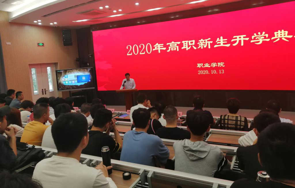 10月13日上午,职业学院2020级高职新生开学典礼在博远楼智慧教室举行。职业学院领导班子成员及相关科室负责人、辅导员,及314名2020级高职新生参加典礼。
