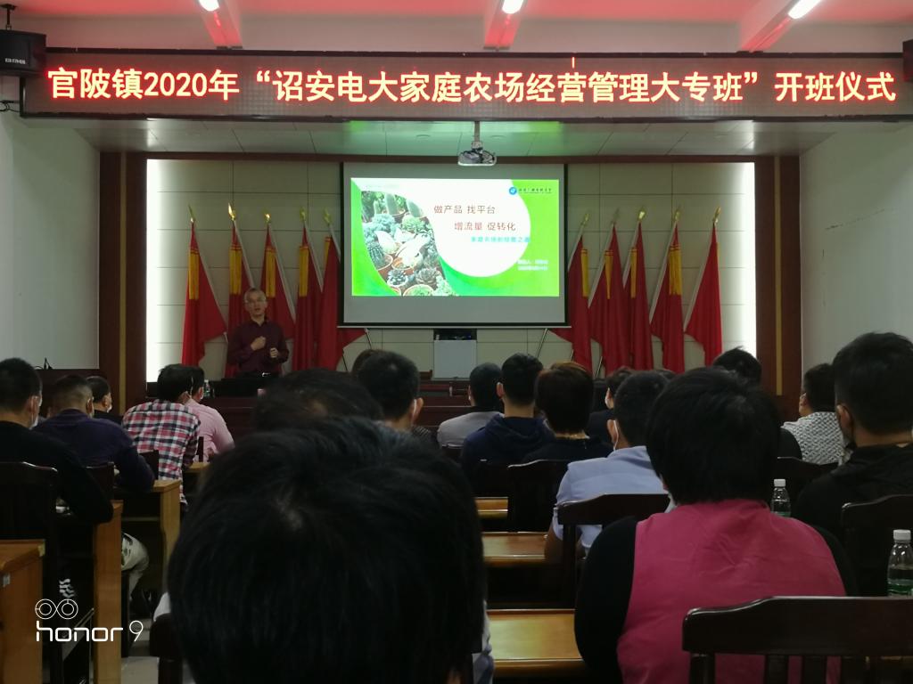 为大力服务和推进乡村振兴战略,培养爱祖国、爱农村、懂农业的农村实用型人才,满足农民对新技术、新经营理念的迫切需求,11月7日,2020年“诏安电大家庭农场经营管理专业大专班”在诏安县官陂镇举行开班仪式,让当地48名农民在家门口就能实现大学梦,培养新型农民。省电大理工学院院长雷乃旺、副院长黄林昊、漳州电大校长李然、诏安副县长沈东生,官陂镇和诏安电大相关人员参加了开班仪式。