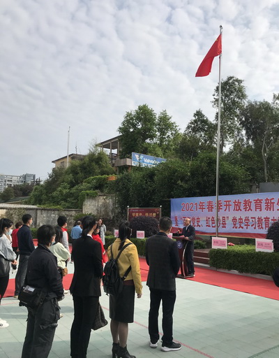 自主开展新生入学教育阶段,各市县电大和教学点结合实际,内容丰富多样。三明分校组织新生入学教育、学习业务培训和党史教育,同学们观看了党史教育影片《建党伟业》;南平分校组织新生登录学习平台,讲授学习方法;沙县工作站举行升国旗仪式、组织“致敬英烈,缅怀英雄”优秀校友肖毅先进事迹报告会及红色沙县党史教育宣讲活动。
