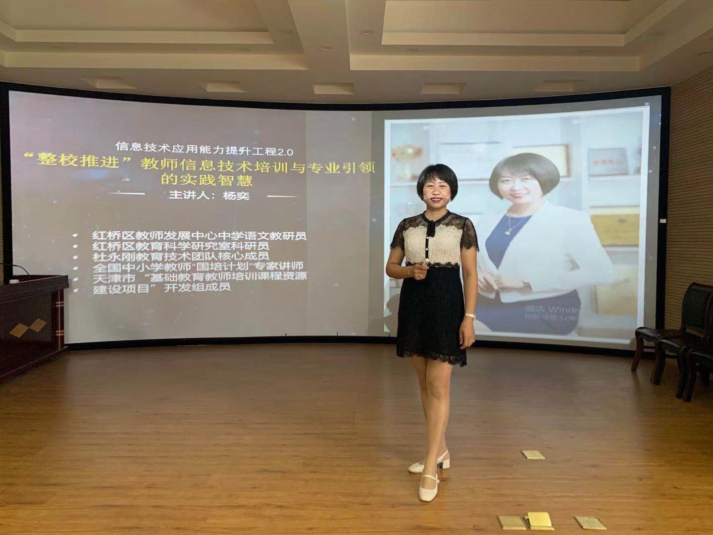 最后,天津市红桥区教师发展中心教研员杨奕作《“整校推进”教师信息技术培训与专业引领的实践智慧》专题讲座。
